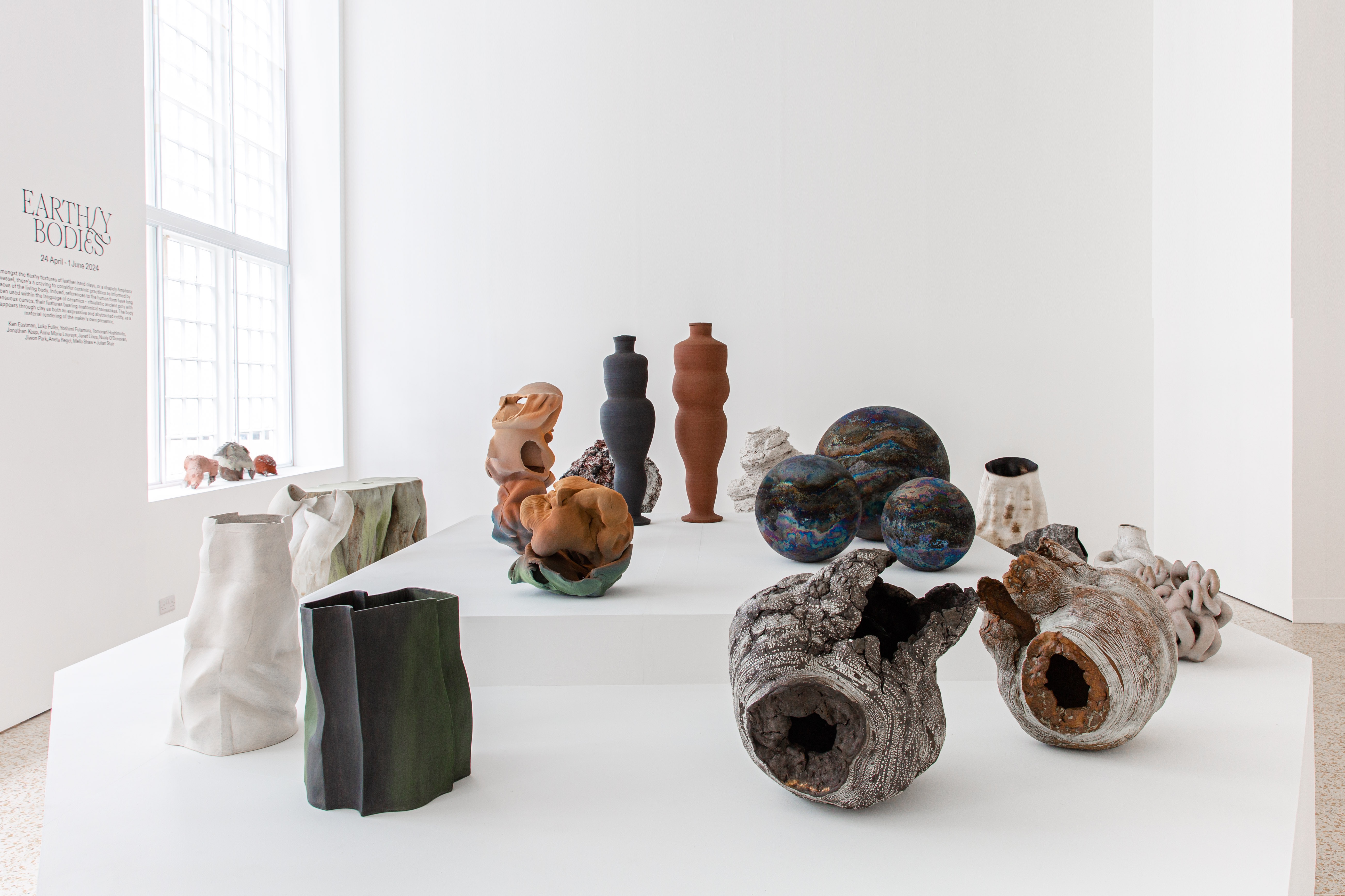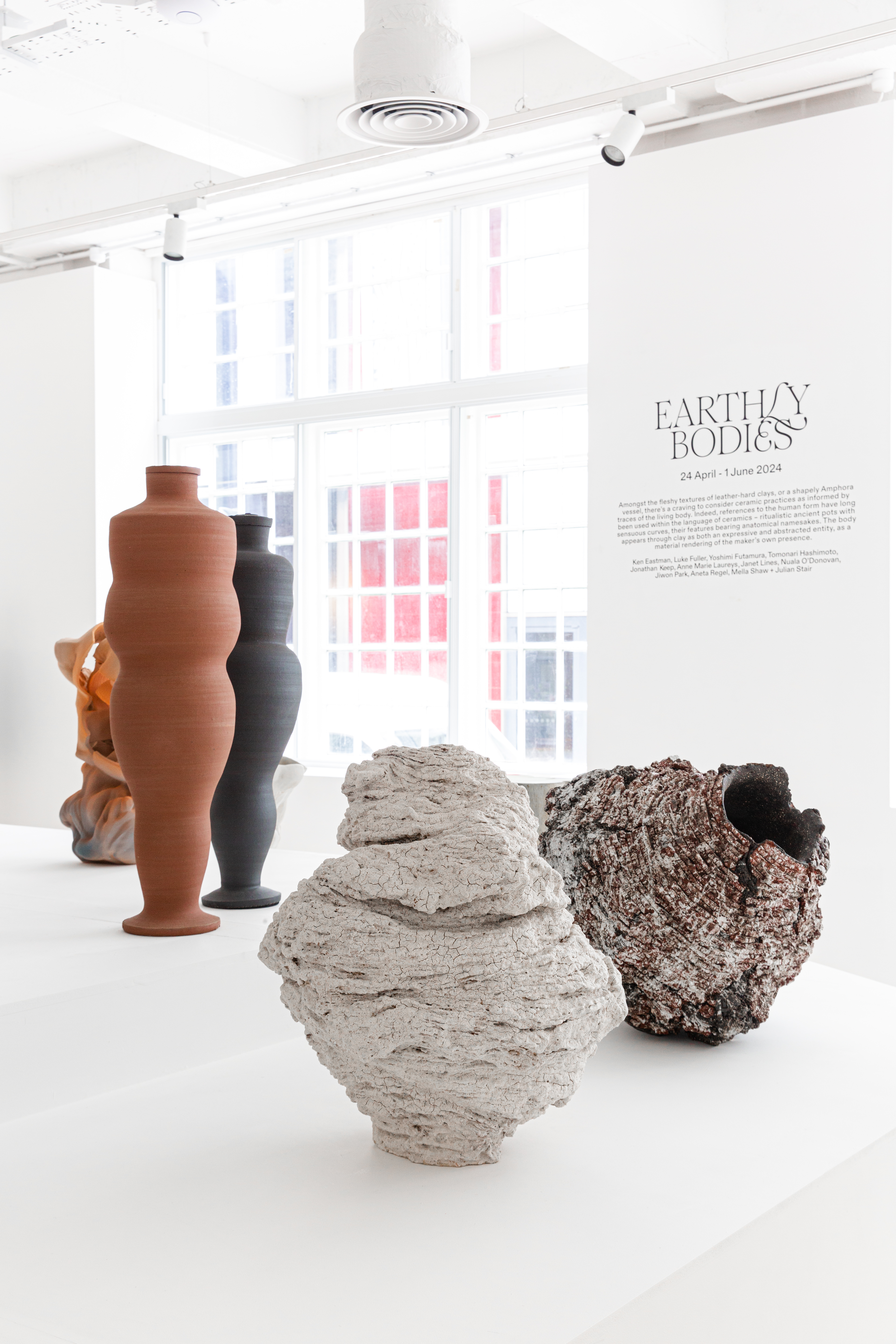The exquisite surface qualities of the ceramics with 'Earthly Bodies' evoke the touch of the epidermis or topographic membrane, inviting an ambient envelopment by bodies and terrains. Ken Eastman and Tomonari Hashimoto achieve uniquely seductive patinas through many coatings of diluted oxides or carbonation, revealing rich subtleties that blend modesty with indulgent splendour. The culmination of the works in the exhibition bears profound witness to bodily plentitudes within contemporary ceramics. Through material and poetic resonance, corporeality persists. Consequently, 'Earthly Bodies' provokes environmental and anthropological readings as it enlivens the interplay between clay and crafted figure.